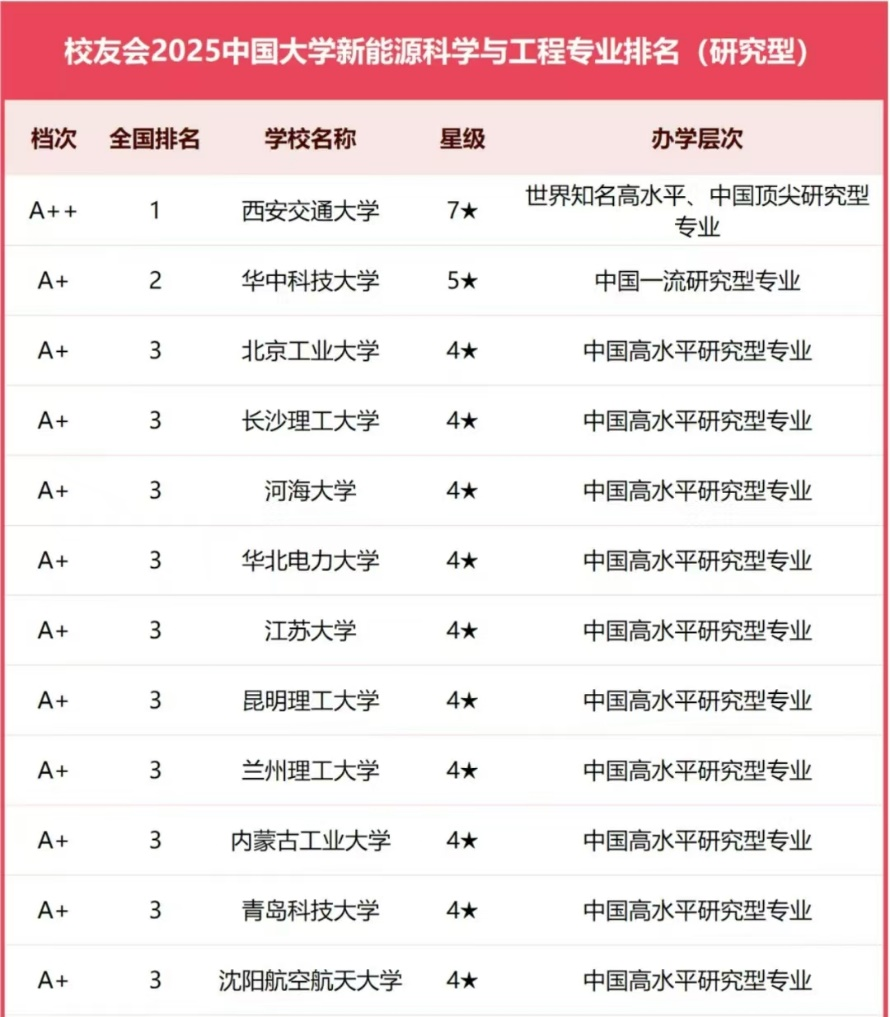 中国校友会榜单显示,永利集团88304官网位居2025中国大学新能源科学与工程专业排名(研究型)第四名。