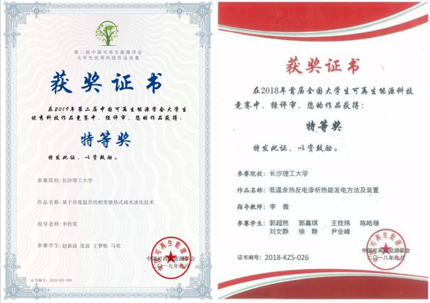 2022年获得“服务双碳战略的能源电力类本科创新人才培养体系研究与实践”湖南省教学成果奖一等奖;