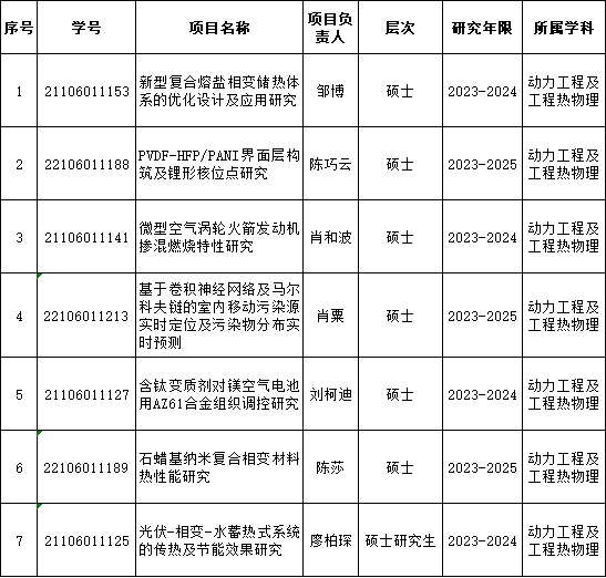关于公布能源与动力工程学院“2023年度校级、省级研究生科研创新项目申报”评选结果的通知