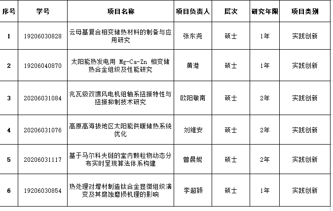 关于公布能源与动力工程学院2021年度专业学位研究生“实践创新与创业能力提升计划”项目申报结果的通知