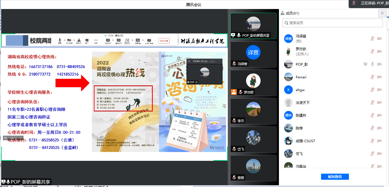 为进一步加强班主任、研究生队伍建设,充分发挥专业老师在专业学习引领与思想政治引导方面的作用,能动学院于4月10日晚7:30,组织开展日常管理、学风促进线上会议,学院党委副书记、副院长张晓烽,副院长孙小琴,全体学工办成员,全体本科生班主任、研究生导师参与本次会议,会议由罗亦欧主持。