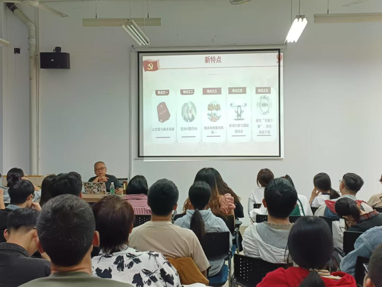 本次党课的主题为“坚持全面从严治党,营造良好的政治生态”。邓豫首先指出,把党内政治生活看成必修课是我们党的优良传统和政治优势,应开展严肃认真的党内政治生活。接着重点论述了《新准则》的重要意义和特点,其中包括《新准则》是党中央根据“四个全面”战略布局的出台文件等内容。而后讲述了《新准则》与《旧准则》的重要区别以及党内政治生活的一些突出问题。最后向全体预备党员指出要明确“如何切实开展批评与自我批评,深入贯彻党的政治生活原则”以及“如何提高自身政治能力,做到‘两个维护’”。