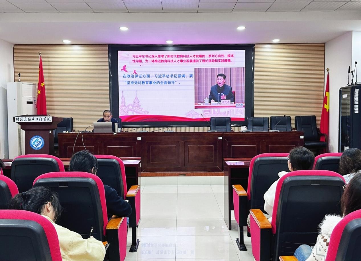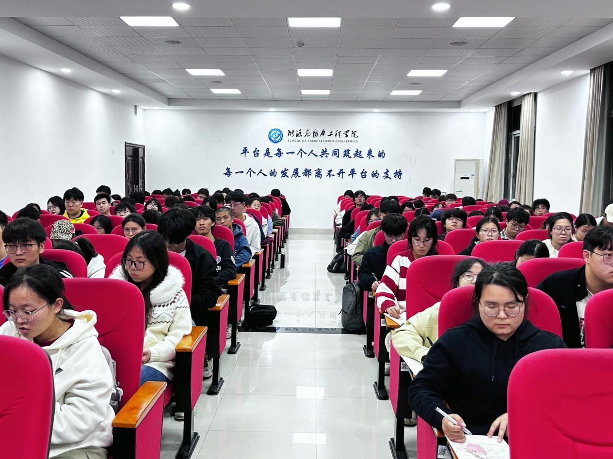 11月10日19:00,能源与动力工程学院第四十六期入党积极分子第五次党课在新能源2号大楼502召开。本次党课由马克思主义学院教授委员会主任余乃忠主讲,内容为《习近平谈治国理政第五卷——一体推进教育科技人才事业发展》,第四十六期入党积极分子培训班全体学员参加。