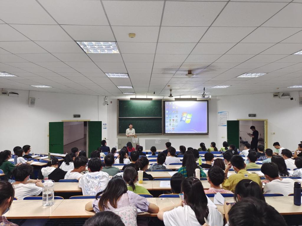 首先,冯春老师上台对本次培训的目的和全国大学生英语竞赛的相关事宜进行讲解;接着钟桂蓉老师上台对竞赛的整体题型进行高度概括,再放出获奖学长分享的经验视频,随着钟桂蓉老师对试卷题型一一分析、教给大家应对策略和考前准备,同学们也积极记录。最后张晓烽总结发言,讲述了他对英语竞赛的看法,最后表达了对大家的殷切期盼。