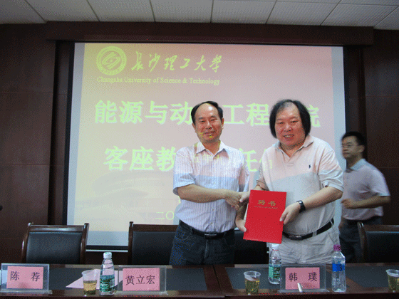 为加强能动学院人才培养和学科建设,学校聘请教育部自动化类教学指导委员会委员、华北电力大学博士生导师韩璞为永利官网客座教授。9月11日上午,在能动学院多功能报告厅举行了聘任仪式,仪式由能动学院副院长何建军主持,副校长黄立宏出席。能动学院负责人、教师及相关专业的研究生和本科生近150人参加了聘任仪式。能动学院陈荐院长代表学校对其在百忙中能接受永利官网的聘任表示衷心的感谢和热烈的欢迎,并简要介绍了韩璞教授的基本情况和主要学术成果。副校长黄立宏为韩璞颁发了客座教授聘书。韩璞教授虚心的表示,很高兴能成为永利集团88304官网能源与动力工程学院的客座教授,以后将尽自己所能为能动学院的学科建设和科技创新发挥自己的力量。