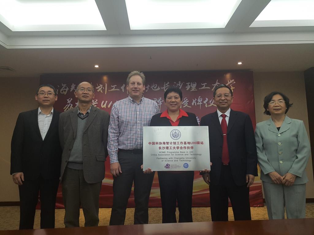 胡永乐、李云先后代表永利集团88304官网和省科协为授牌仪式致辞,然后Stuart Gibb先生发表了热情洋溢的讲话,表示很高兴成为永利集团88304官网海智计划工作基地的一员,并将继续为湖南省的国际科技交流和海外高层次人才的引进做出贡献。永利集团88304官网海智示范基地建设负责人向健平教授介绍海智计划工作基地UHI驿站建设情况和下一步工作计划。胡永乐和李云共同为中国科协海智计划工作基地UHI驿站永利集团88304官网合作伙伴授牌,向健平和Stuart Gibb分别代表永利集团88304官网海智基地和苏格兰UHI驿站受牌。
