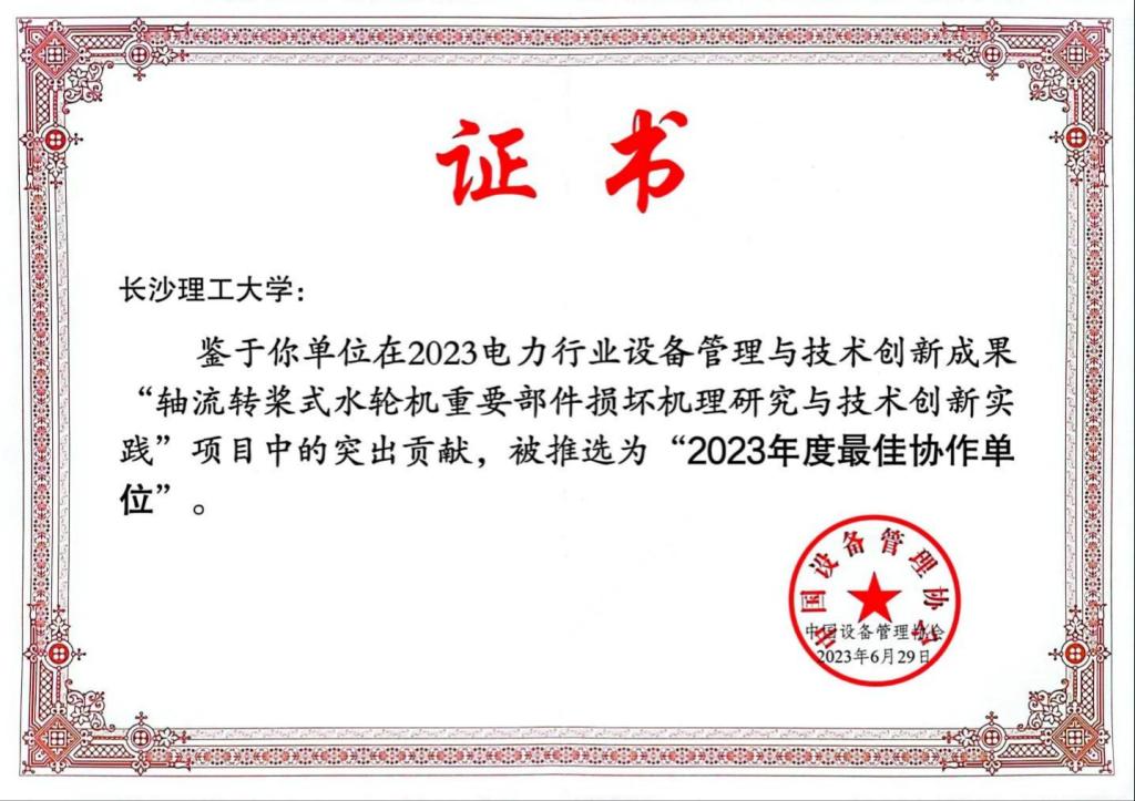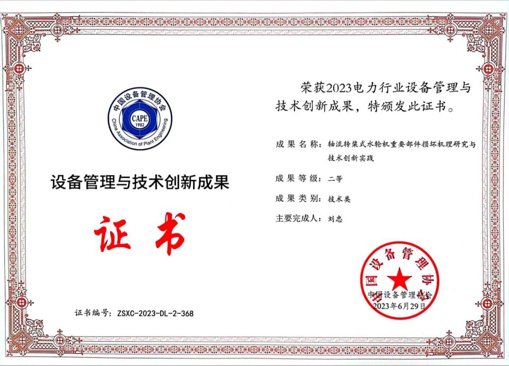 6月29日至30日,由中国设备管理协会主办的2023行业设备管理与技术创新成果交流大会在浙江省温岭市举行。贵州清水江水电有限公司挂治水力发电厂和永利官网共同完成的“轴流转桨式水轮机重要部件损坏机理研究与技术创新实践”荣获2023 电力行业设备管理与技术创新成果二等奖,永利官网被授予“最佳协作单位”。校方主要完成人、我院刘忠教授参加了此次大会。