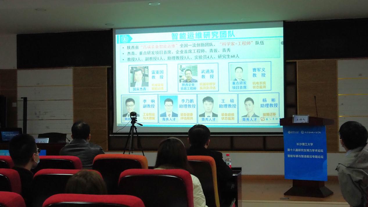 2022年11月29日10:50,西安交通大学教授、博士生导师。美国机械工程师协会会士、英国工程技术学会会士、国际工程资产管理协会会士、科睿唯安全球高被引科学家、国家杰出青年科学基金获得者雷亚国教授受汽机学院邀请做客永利官网第十八届研究生博力学术论坛“智能车辆与智造前沿”专题论坛。本次报告由汽机学院院长杜荣华主持,副校长胡永乐、书记施一满、副院长胡林、副院长毛聪、副院长尹来容、副书记唐宏宾、胡波、汪红兵等教师及部分研究生参加了本次报告。