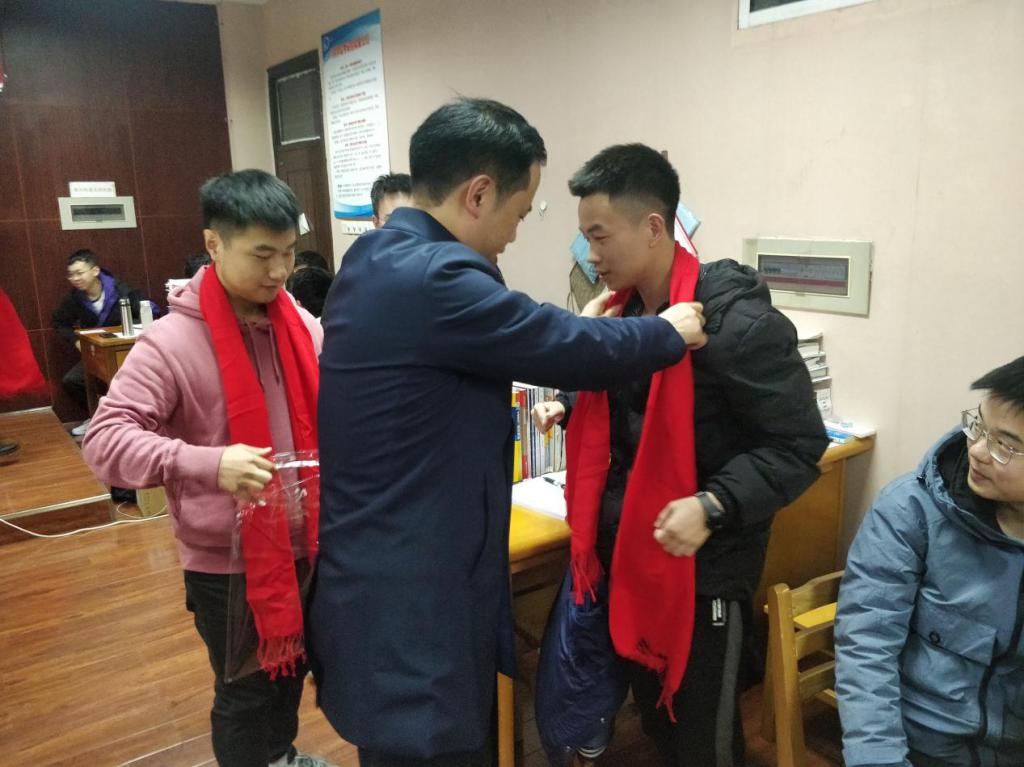 学院党委副书记刘亚辉,副院长毛聪,17级辅导员蔡翔羽以及学生志愿者们带着220条精心定制的印有汽机学院院徽,院训,以及2021一战成硕祝福语的纪念围巾,走进考研自习室,为我院即将奔赴研究生入学考试的学子送去关心与祝福。