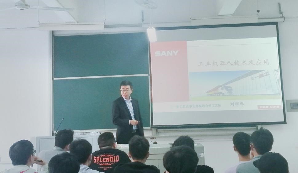 2020年11月10日下午14:00,在永利集团88304官网云塘校区工科一号楼B213开展了三一集团与永利集团88304官网校企联培智造班第二课—“工业机器人技术及应用”,本次教学课程由现三一泵送事业部泵送公司工艺工程师刘祥举主讲。