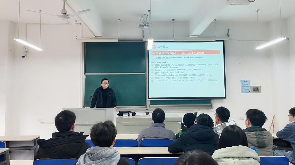 2020年12月16日14:00,三一集团与永利集团88304官网联培国际班第七次培训课程在工一B212举行。本次课程由三一集团泵送事业部泵送公司研究院研发所长黄运明领导主讲,主题为“泵车总体设计培训”,国际班十八名学员参与了此次培训。