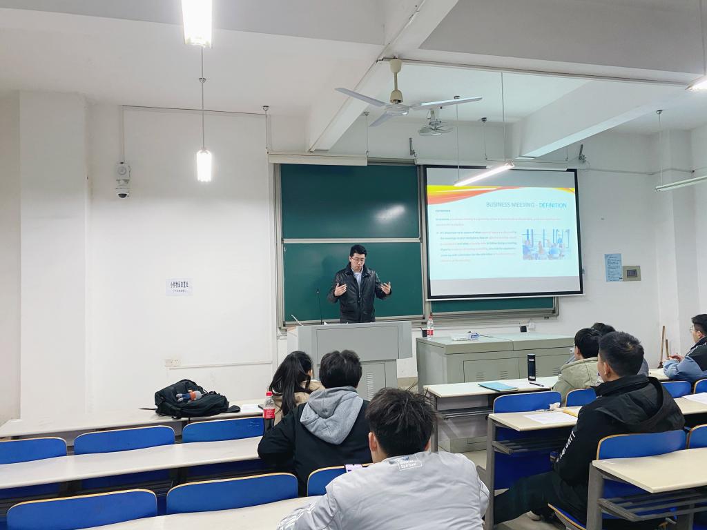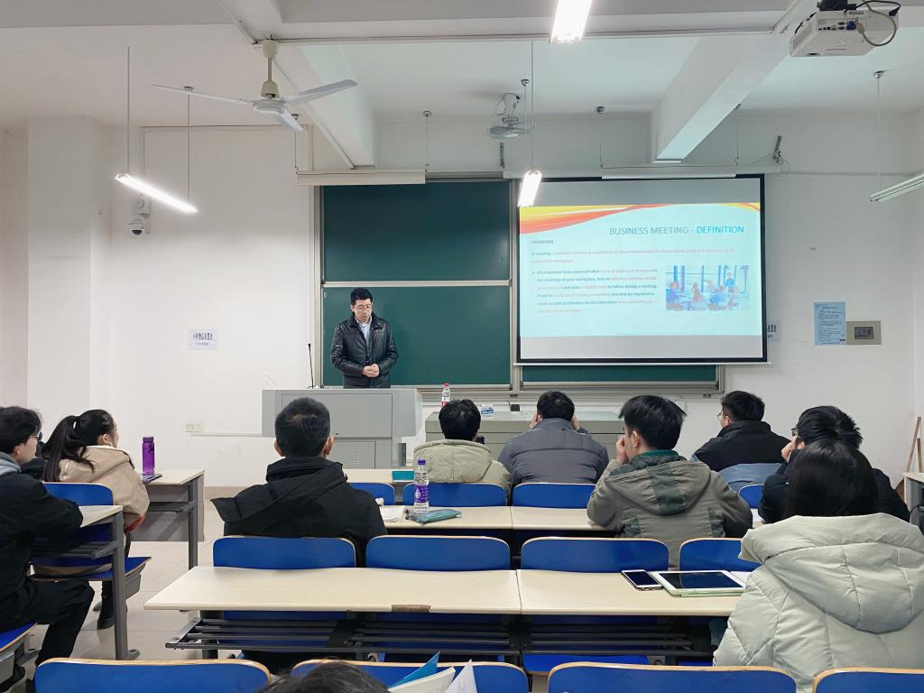 2020年12月23日18:30,三一集团与永利集团88304官网联培国际班第八次培训课程在工一B212举行。本次课程由三一集团泵送事业部国际营销公司营销管理部国际营销经理梁贺新主讲,主题为“专业英语(会议)”,国际班十八名学员参与了此次培训。