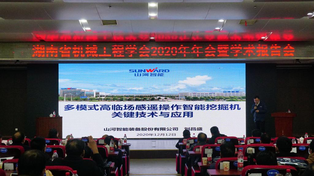 2020年12月上午10:30,山河智能特种装备研究总院副院长刘昌盛博士应邀于湖南省机械工程学会2020年年会暨学术报告会上作《多模式高临场感遥操作智能挖掘机关键技术与应用》学术报告。学术报告会由机械工程学会常务理事杨旭静主持。