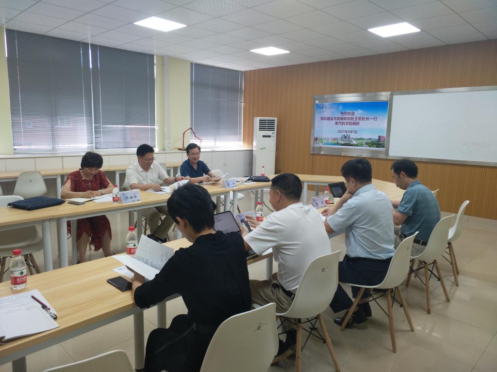 施一满对学科建设与发展规划处处长王宏一行的到来表示欢迎。毛聪作《机械工程学科建设现状、目标及举措》专题工作汇报。报告从学院学科建设的现状及问题、“十四五”建设重点任务与举措两个方面进行阐述;杜荣华就学院学科建设未来的重点工作及学科建设发展方向做补充说明;施一满分析了学院实际困难,希望得到学校支持与帮助。会上,与会人员就学科建设相关工作及问题进行研究与探讨。