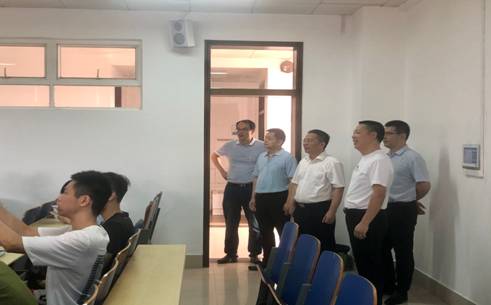 9月6日,本学期开学第一天,早上7:50,学校胡永乐副校长在书记施一满、院长杜荣华的陪同下,会同学院其他班子成员和学生辅导员等深入教学班级检查学院教学秩序。
