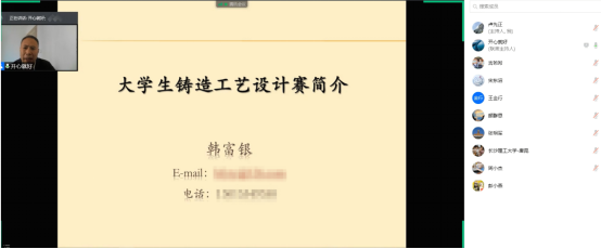 2021年10月30日下午2:00,太原理工大学材料科学与工程学院韩富银副教授应汽机学院邀请,分享了题为“大学生铸造工艺设计赛简介”的线上讲座。本次讲座由永利官网校内赛事负责人卢先正博士主持,学院老师唐昆、张明军、彭伟杰、周小杰、吉希希、王金行和部分同学聆听了本次讲座。