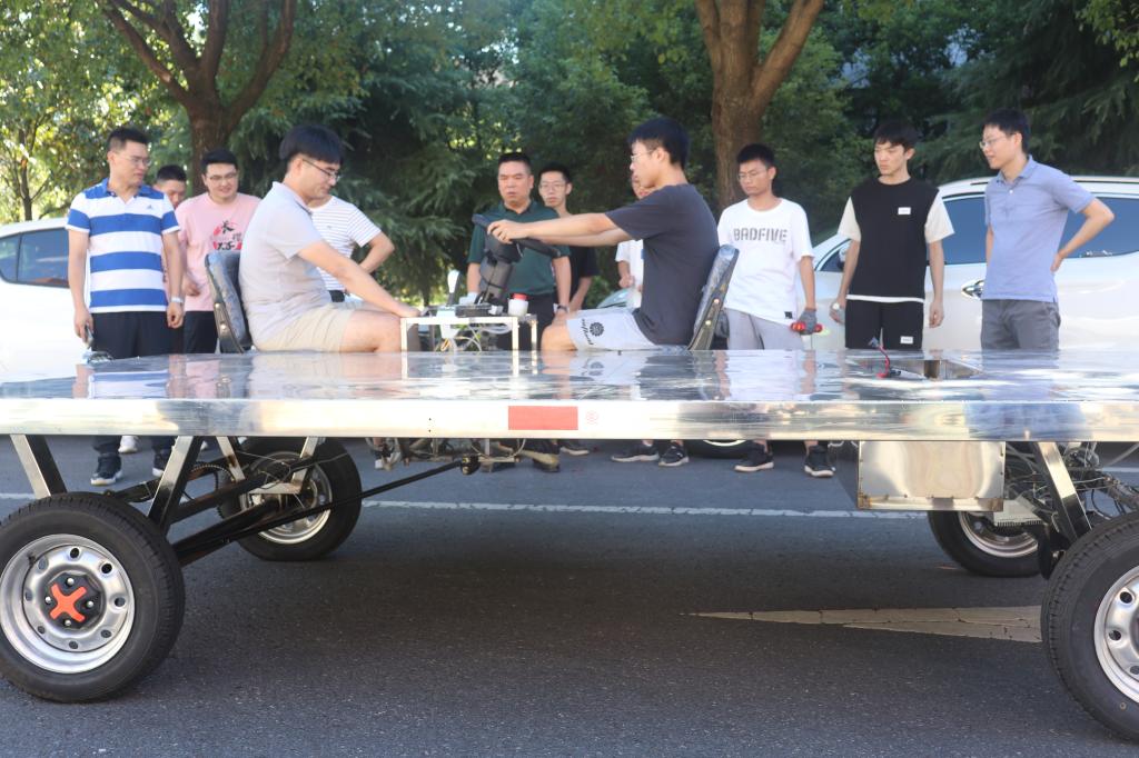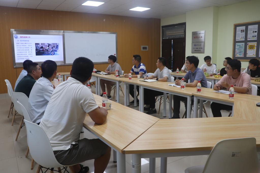 杜荣华院长介绍了学院“工程车辆安全性设计与可靠性技术”和“机械装备高性能智能制造关键技术”湖南省重点实验室,以及学院科研成果产业化情况。尹来容副院长针对课题组研制的“多功能隧道治理双向驾驶平板车”等多项关键技术进行了现场讲解与路面测试。