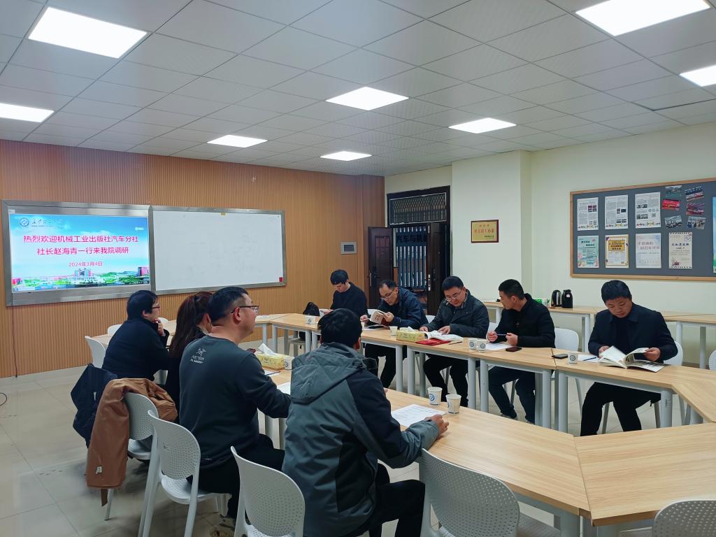 胡林对机械工业出版社汽车分社人员的到来表示热烈欢迎,并介绍了学院基本情况。赵海青介绍了调研目的和机械工业出版社汽车分社的建设发展状况,并表达加强与学院合作的意向,愿意为学院提高教材和学术专著水平、促进教育综合改革和创新发展提供更大支持。双方就汽车专业专著和教材出版、高水平出版资助、教学教材配套资源在线共享等工作进行了深入交流。