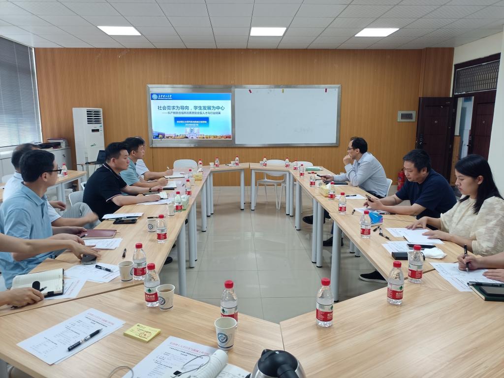 会议双方介绍与会人员,胡林对文韬副院长(主持)一行的到来表示欢迎并简要介绍学院基本情况;随后,分别进行两个专题调研,唐宏宾在B411会议室作《“社会需求为导向 学生发展为中心”-科产教联合培养高素质复合型人才与行业精英》的介绍,重点介绍学院近年来学院产教融合教育所取得的成绩;随后,与会双方就专业认证、专业建设、实习实践教学等工作进行了交流和探讨;与此同时,中南立业科技大学机械与制造学院副书记徐钰婷及辅导员一行在学院学工办主任彭琼英老师带领下参观“匠心学堂”一站式育人社区建设,并交流学生思想政治工作心得与经验。