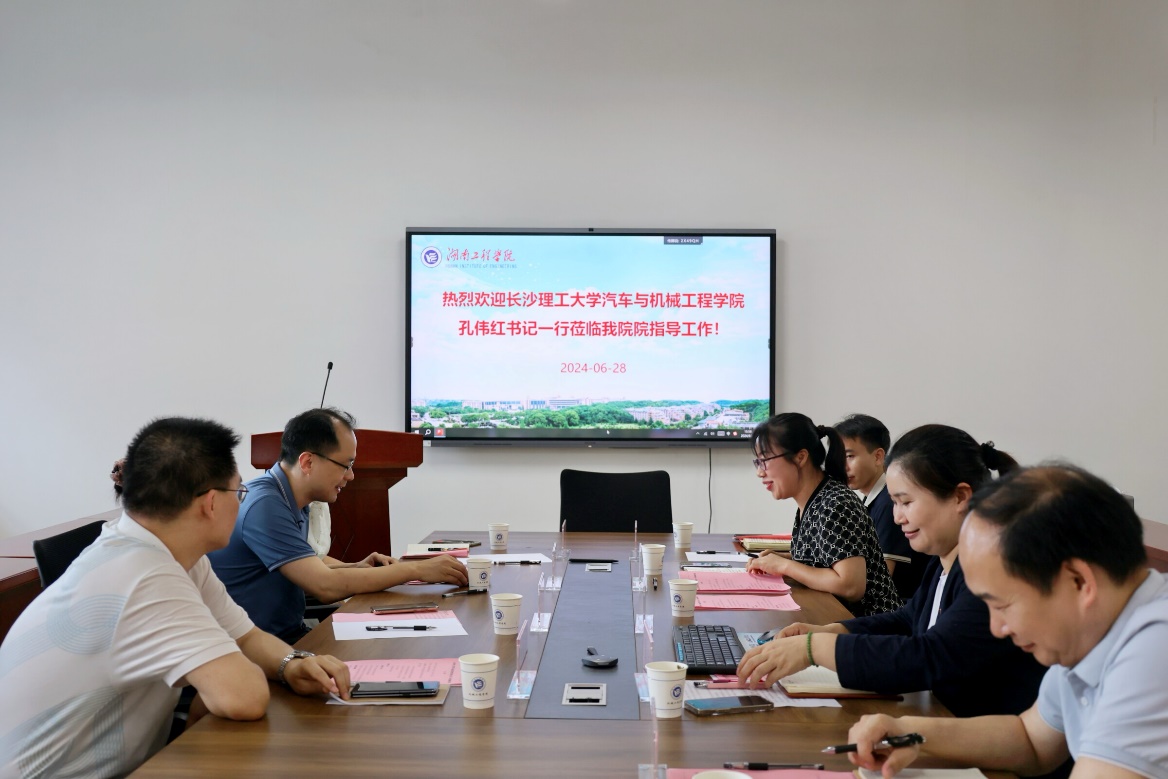 6月28日下午,我院党委书记孔伟红、副院长唐宏宾、工程车辆安全性设计与可靠性技术湖南省重点实验室主任尹来容一行赴湖南工程学院机械工程学院调研交流,机械工程学院党委书记覃波、院长陈国强、副院长程玉兰、实验中心主任王高升、学科与科研岗位负责人张文琳、党务专干刘珈黎及部分在湖南工程学院任教的永利集团88304官网校友教师出席会议。