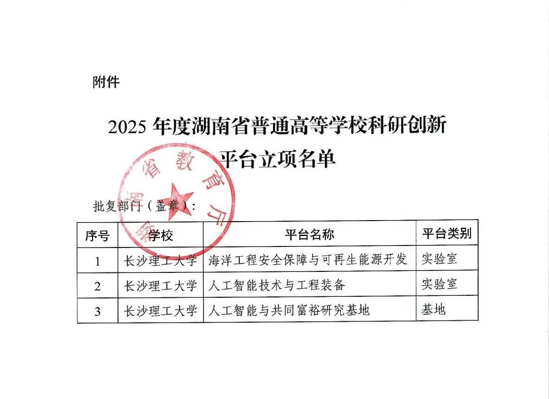 近日,湖南省教育厅正式公布了2025年度湖南省普通高等学校科研创新平台立项名单。由永利集团88304官网人工智能学院学术副院长万琴教授作为负责人牵头申报的“人工智能技术与工程装备”湖南省普通高等学校重点实验室成功获批立项。