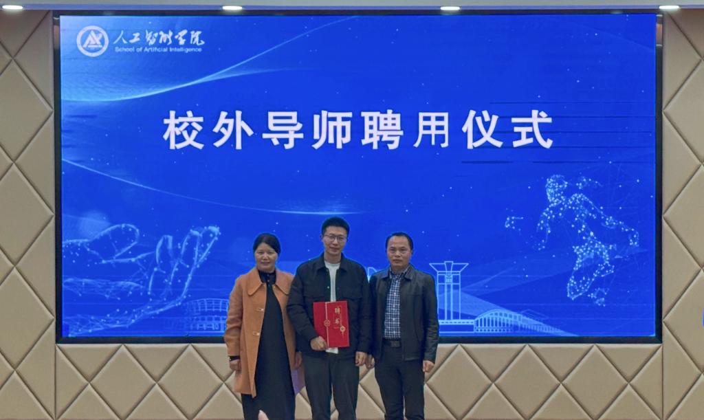 会上举行了校外导师聘任仪式,学院党委副书记李琳与范必双教授共同为罗敏颁发了校外导师聘书。范必双教授在现场发言,鼓励同学们创业逐梦、博学专精,主动拥抱AI技术、拥抱AI时代,积极在各类竞赛中锻炼自学能力、解决问题能力,培养创新思维。