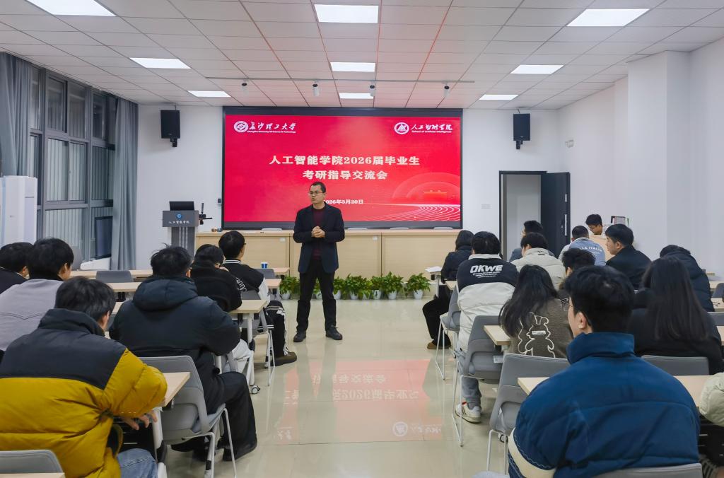 为切实做好2026届毕业生考研复试服务工作,帮助同学们精准把握复试要点、提升应试能力、增强备考信心,3月20日上午10点,人工智能学院在三全育人基地A201室召开2026届毕业生考研复试交流会。学院副院长王文,专业教师席燕辉、谢七月、付强出席并现场指导,学院党委副书记李琳、毕业班辅导员欧彩玲及2026届考研备考学生参加本次活动。