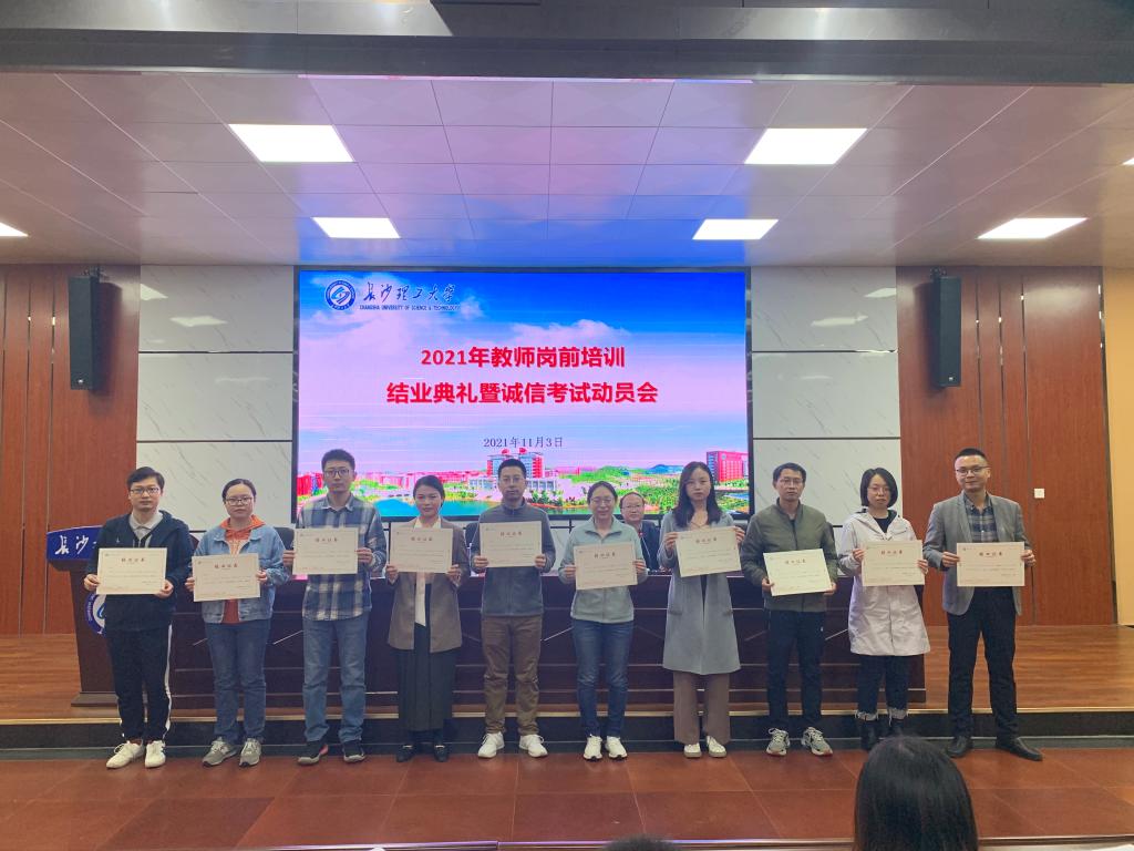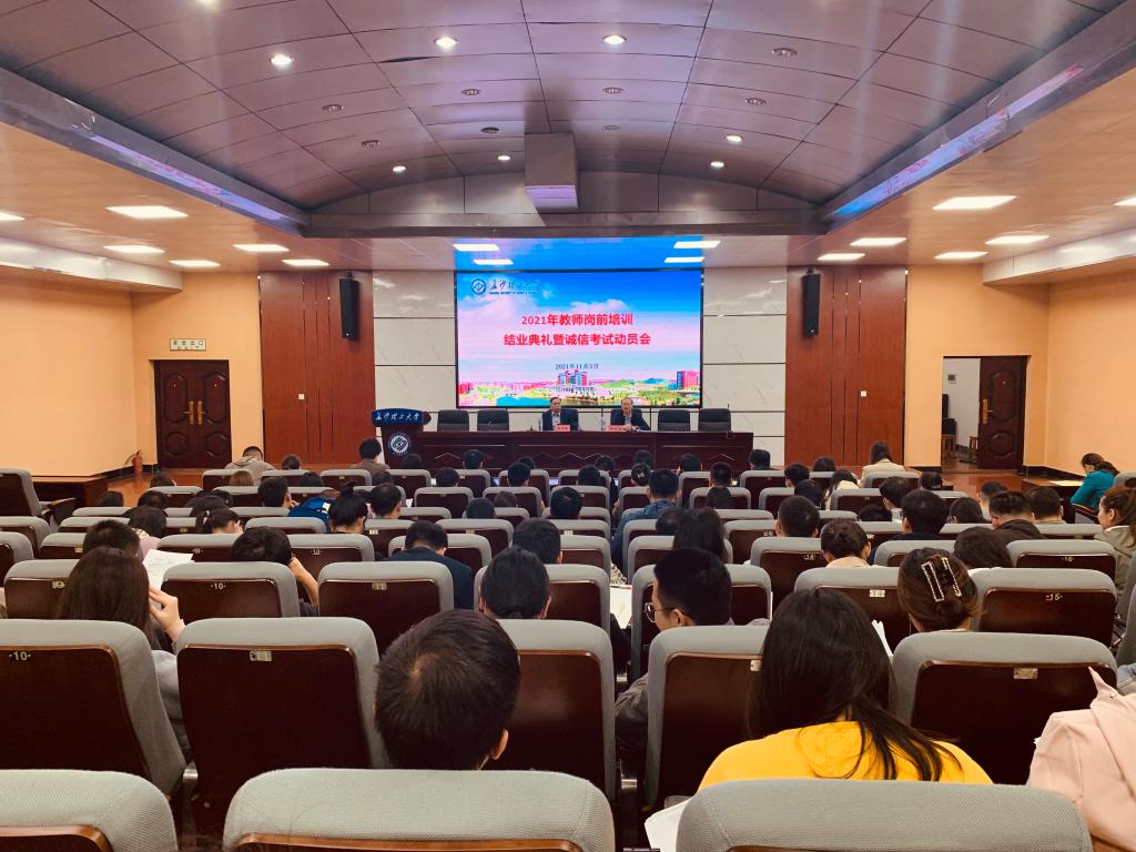 11月3日,永利官网在金盆岭校区四教报告厅召开了2021年教师岗前培训结业典礼暨诚信考试动员会,校党委教师工作部部长、人事处处长杨华峰,校党委教师工作部副部长、人事处副处长徐欣国,人事处相关工作人员及培训班全体学员参会,会议由徐欣国主持。