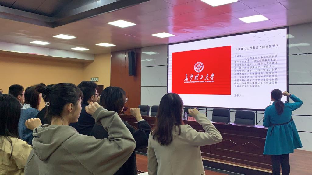 杨华峰为105名学员逐一颁发结业证书,祝贺他们顺利完成岗前培训班的学习。在岗前培训班班主任、人事处师资建设科董端的带领下,全体学员面向校旗,进行了庄严的新教师入职宣誓。