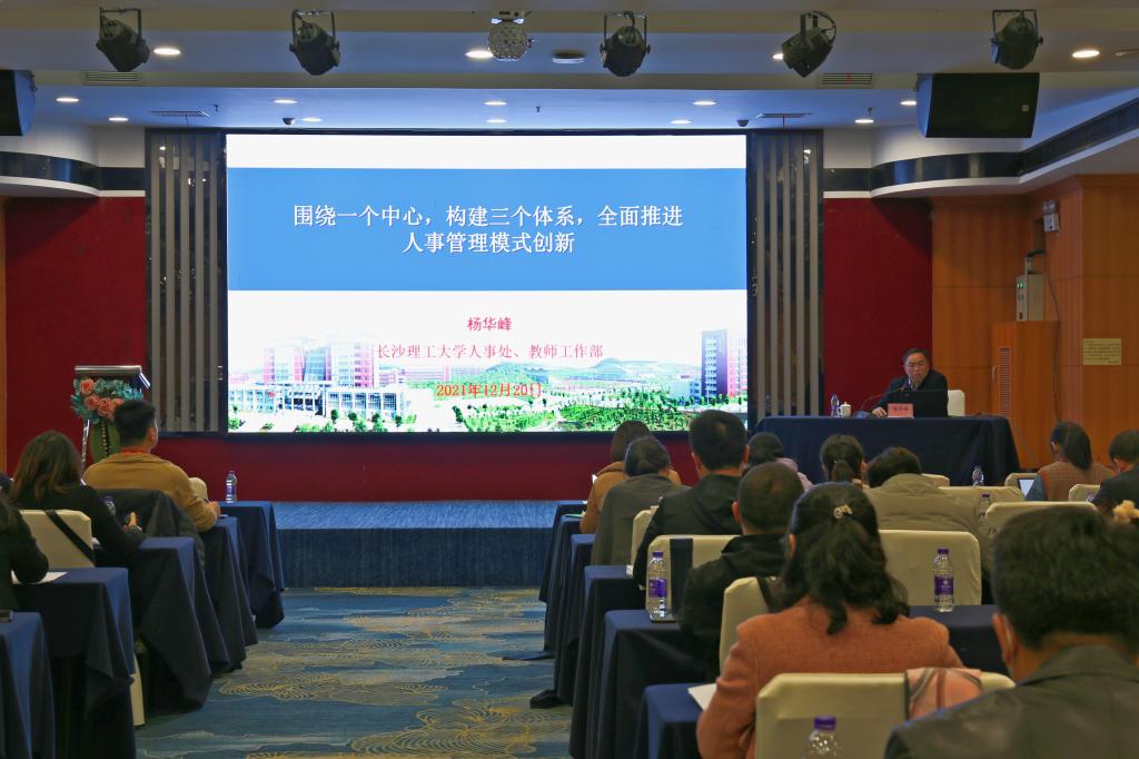 永利官网人事人才工作改革创新成果得到了湖南省高等学校师资培训中心高度关注。12月20日,受湖南省高等学校师资培训中心的邀请,永利官网人事处处长杨华峰教授为“湖南省高等学校人事、师资、教发及教师工作部管理干部高级研讨班”开讲,他以“围绕一个中心,构建三个体系,全面推进人事管理模式创新”为题,向省属高校人事等管理干部做了专题报告,进行了成果宣讲和工作交流。