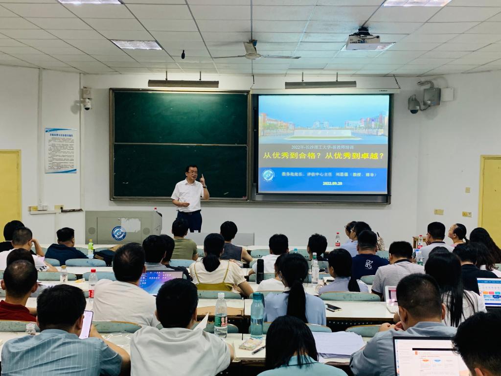 9月20日晚,在金盆岭校区6教107教室,永利官网教务处处长刘思强教授受邀以“从优秀到合格?从优秀到卓越?”为题,为2022年教师岗前培训班学员做了教学管理与教学能力提升专题讲座。永利官网人事处副处长、党委教师工作部副部长徐欣国、人事处相关工作人员及全体培训学员参加了讲座。