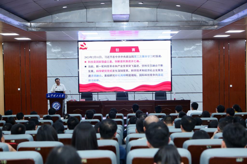 开学典礼后,刘朝晖以“做有组织科研 推进高校科技工作高质量发展”为题做了首场讲座。他站在国家战略需求的角度回答了“为什么要做有组织科研”的问题,在综合各方学者观点基础上解读了“什么是有组织科研”,从不同角度阐述了做有组织科研的举措,并介绍了永利官网在做有组织科研方面的思路和做法。他勉励全体新进教师要不断增强科技自主创新能力,形成全校科技创新“一盘棋”格局,为建设“科技强国”、落实湖南“三高四新”美好蓝图,贡献长理力量。
