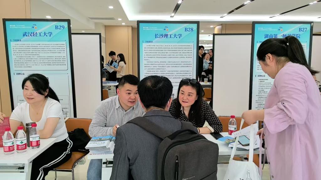 会议现场设立政策咨询展位,通过宣传手册发放及"一对一"深度洽谈等形式,系统阐释学校"人才强校"战略内涵。面洽会吸引了上海交通大学、复旦大学、同济大学等多个知名高校的博士、博士后参与。在永利集团88304官网展位前,与会代表向应聘者详细介绍了学校学科布局及人才引进政策,重点解读了青年教师培养机制及“湖湘学者”人才计划。针对人才关心的薪酬待遇、住房保障、考核与晋升等实际问题进行了一对一答疑,并现场接收简历。本次洽谈会永利官网共收到来自交通、土木、化学、材料科学、人工智能等领域的博士简历近30份。后续,学校人才工作办公室将分类跟进意向人选,加速推进人才引进流程。