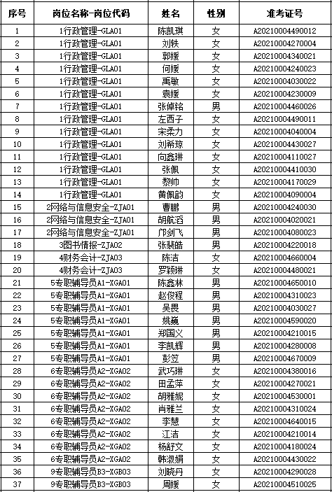 根据《永利集团88304官网2021年公开招聘管理教辅人员及专职辅导员公告》及有关规定,经公开报名、资格审查、笔试、面试、体检、考察等程序,经学校党委会研究,确定陈凯琪等37名同志为2021年永利集团88304官网公开招聘拟聘用人选,现予以公示。