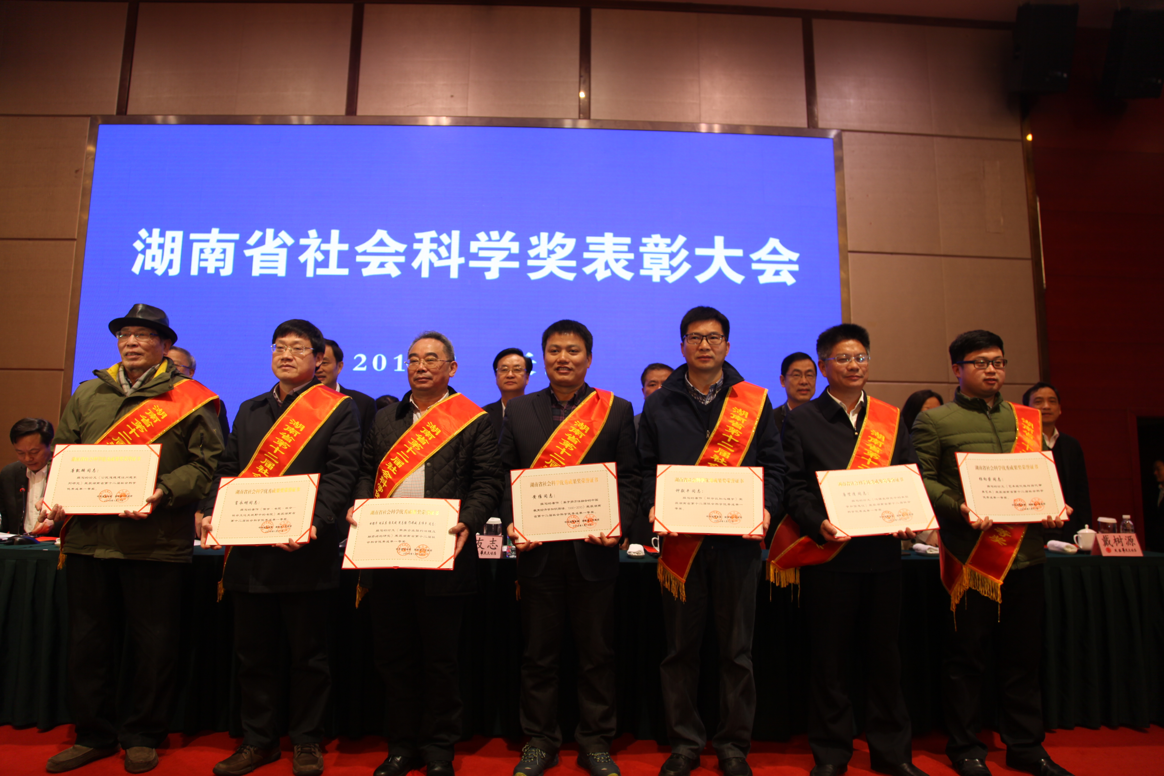 3月11日上午,湖南省社会科学奖表彰大会在长沙芙蓉华天大酒店召开。会上,省人大常委会副主任、省人民政府副省长李友志宣读了《中共湖南省委湖南省人民政府关于表彰湖南省第十二届社会科学优秀成果、第五届优秀社会科学专家、第三届优秀青年社会科学专家的通报》,全省获评湖南省第十二届社会科学优秀成果奖99项,其中一等奖14项、二等奖41项、三等奖44项,湖南省第五届优秀社会科学专家4人,湖南省第三届优秀青年社会科学专家5人。