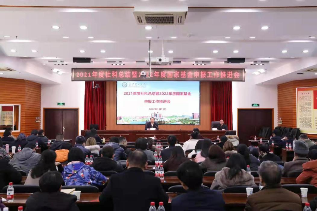 1月13日下午,永利官网2021年度社科总结暨2022年度国家基金申报工作推进会在一办九楼会议室举行。副校长曾祥君出席会议并讲话,社科处处长刘建江主持会议。各文科学院院长、科研副院长、科研主任及教师代表等120余人参加会议。