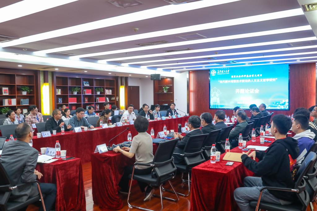 2021年10月10日上午,由永利官网马克思主义学院易显飞教授担任首席专家的国家社科基金重大项目“当代新兴增强技术前沿的人文主义哲学研究”开题论证会在云塘校区图书馆二会议室举行。湖南省哲学社会科学规划办公室主任陈湘文,湖南省自然辩证法研究会理事长、湖南省委党校副巡视员彭富国,副校长谈传生出席开题论证会。