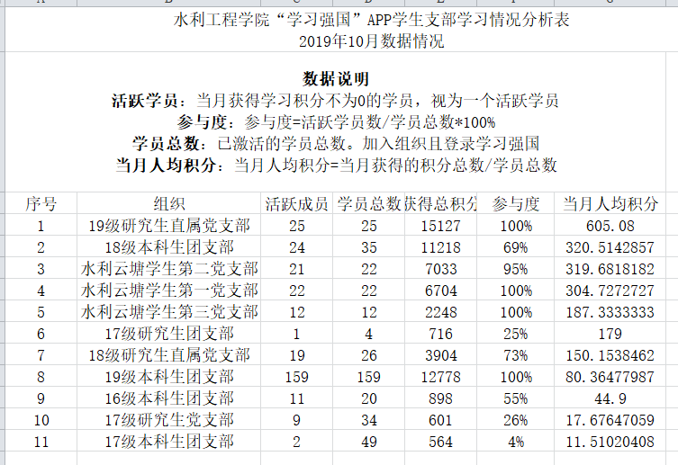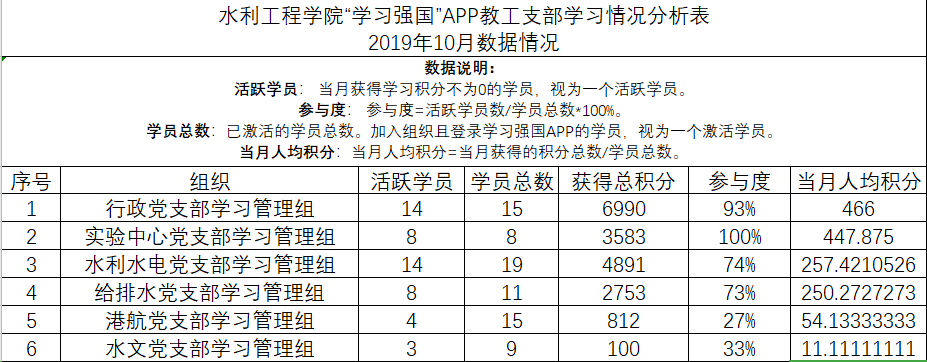 通过比对10月1日及11月1日两个日期每个支部党员在“学习强国”平台上的学习分数,得出了10月份我院党员的学习情况,现将评比结果通报如下。