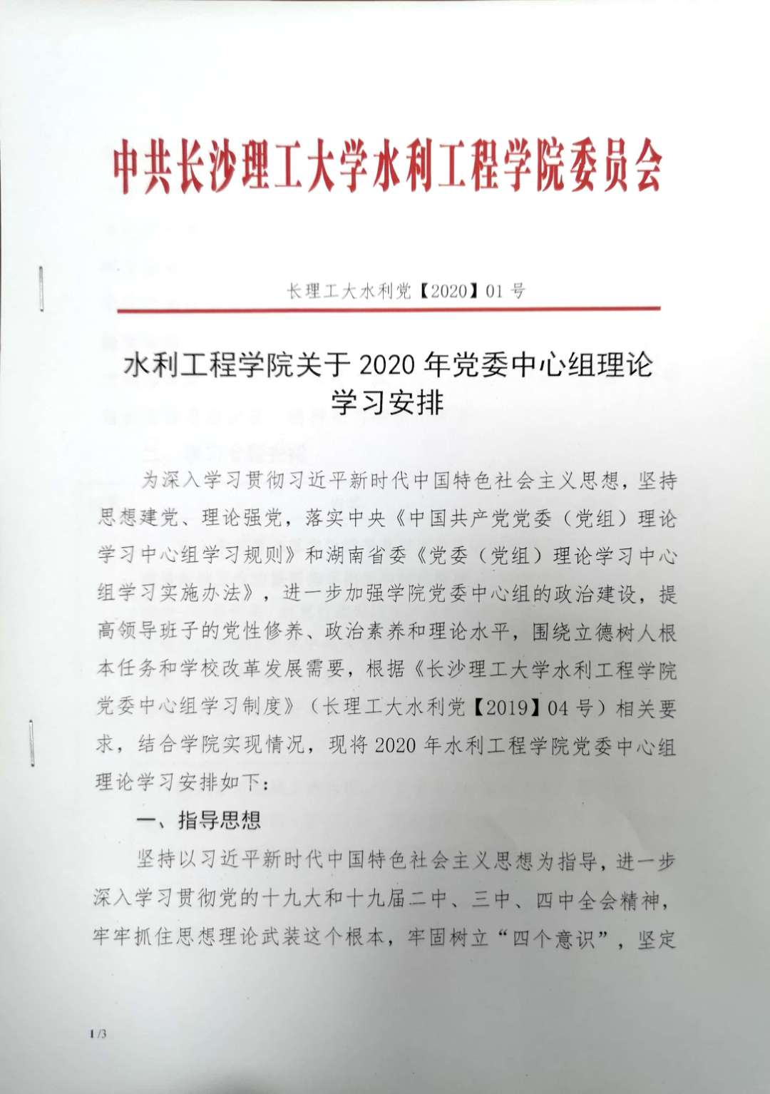 水利工程学院关于2020年党委中心组理论学习安排(长理工大水利党【2020】01号)