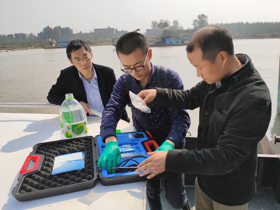 调研组深入湘阴县易婆塘采区,并登上采砂工程船,对吸砂式采砂工程船的工作原理与工艺流程、采砂管理与监督机制、采砂工程船管理制度、视频监管设施、环境保护设备、安全生产应急预案、安全生产管理制度与责任体系等进行实地考察,利用携带的MPS-5水质自动监测仪、PSL1000污泥界面计、HD700A水位观测仪和Polymetron 9582溶解氧分析仪对采区现场水体的pH、泥沙浓度、水深和溶解氧进行了检测,利用采样瓶对开采上来的砂石进行取样,利用无人机对采砂船及其周边水域、陆域的地形、地貌、生态环境及周边航道、涉水工程等情况进行了航测。同时,调研组还与采砂船上的工作人员就采砂对防洪安全、通航安全、生态、环境、涉水工程影响等进行了详细的交流,并就如何推进杜家毫书记布置的湖砂资源利用课题征求了建议和意见。