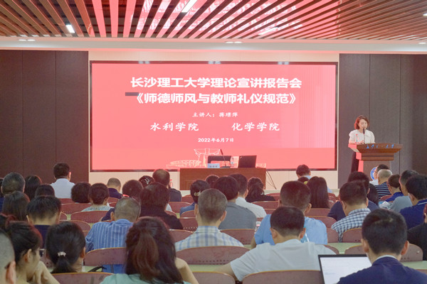 67日下午,副校长蒋璟萍在工三A307为水利与环境工程学院和化学化工学院全体教师开展理论宣讲,宣讲主题为《师德师风与教师礼仪规范》。