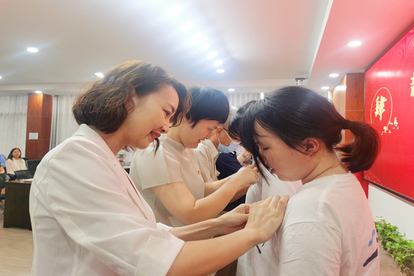 之后,学院领导为今年新发展的党员们授予党员徽章,将党的坚定信念和先锋精神传递给新一批党员,期望他们不忘初心,砥砺前行。