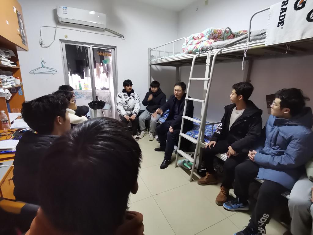 12月3日上午,水利学院院长陈杰、党委副书记银波深入学生宿舍与学生亲切交谈,了解学生思想状态。