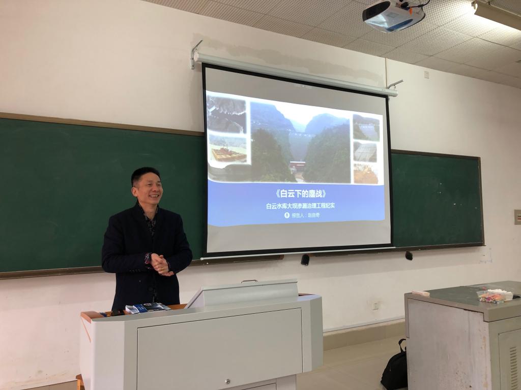 2月27日下午,来自湖南水总水电建设集团有限公司的赵自奇高级工程师在云塘综合教学楼A304教室,为我院2015级水利水电工程专业的同学们做了题为《白云下的鏖战——白云水库大坝渗漏治理工程纪实》专题报告,水利水电教研室部分老师也参加了此次报告。