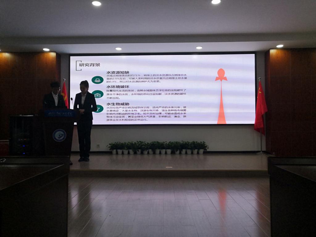 本次大赛全校共有18支队伍报名,130多名师生参加了比赛。各参赛代表队通过作品介绍、现场答辩和实物模型展示等环节展开了角逐。经过大赛评审委员会评选。最终评出校级获奖作品共12项。刘力侨等同学申报的作品“自动式河道漂浮污物清理装置”和陈林涛等同学申报的作品“疏浚工程防细颗粒扩散气幕帘”获校级一等奖。