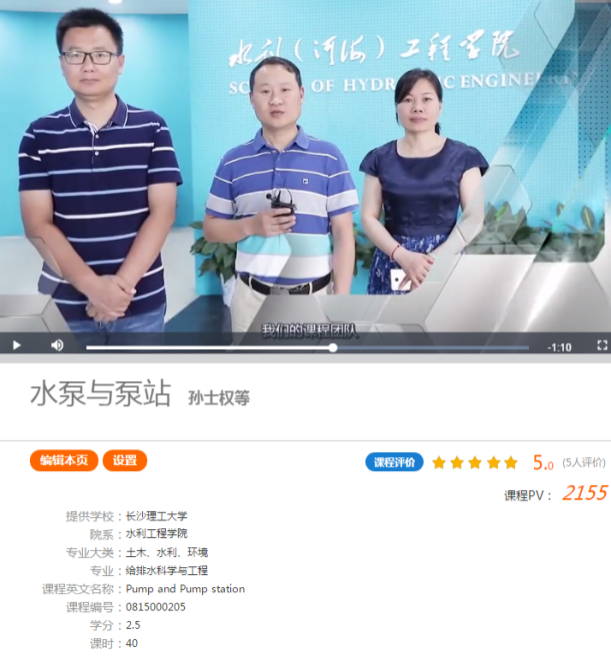 给排水系积极响应给排水科学与工程专业教学指导分委员会(简称给排水教指委,下同)要求,向其推荐永利官网省级在线建设课程、省一流课程《水泵与泵站》作为全国高校共享在线教学资源课程。经给排水教指委专家们审定,永利官网《水泵与泵站》课程进入给排水科学与工程专业在线课程资源推荐共享目录,并被辽宁石油化工大学等全国15所近900名高校师生选修为在线课程,实现水利工程学院“金课”师者助力全国高校课程与在线选课人数的双突破。