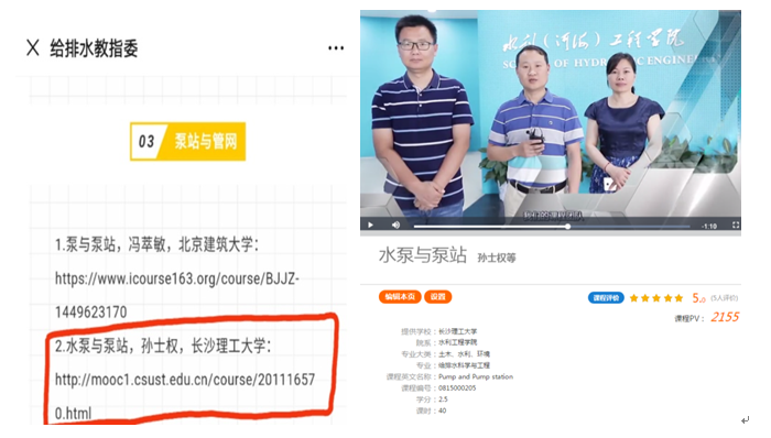 我院给排水系积极响应给排水教指委积极对接给排水科学与工程专业教学指导分委员会要求,向其推荐永利官网省级在线建设课程、省一流课程《水泵与泵站》作为全国高校共享在线教学资源课程。经给排水教指委专家们审定,我院《水泵与泵站》课程进入给排水科学与工程专业在线课程资源推荐共享目录,并被辽宁石油化工大学等全国15所近900名高校师生选修为在线课程,实现水利工程学院“金课”师者助力全国高校课程与在线选课人数的双突破。