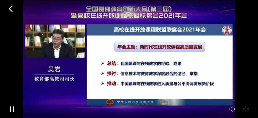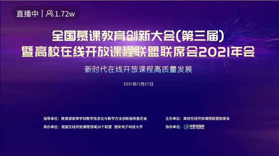 11月27日,全国慕课教育创新大会(第三届)暨高校在线开放课程联盟联席会2021年分会隆重举行,我院组织一流课程及金课教学团队、慕课及在线课程等专业课教师90多人观看了大会直播。