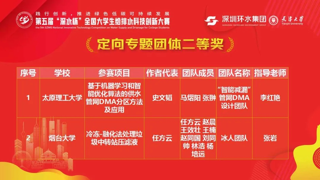 5月13-14日,第五届“深水杯”全国大学生给排水科技创新大赛在天津大学圆满举行,本次比赛由全国大学生给排水科技创新大赛组委会、中国城镇供水排水协会科学技术委员会主办,深圳市水务(集团)有限公司和天津大学承办。来自武汉大学、大连理工大学、华中科技大学、河海大学、四川大学等81所高校的175支队伍参加了比赛。永利官网选送的两支参赛队伍分别获定项专题竞赛团体二等奖和创意大赛团体优胜奖。