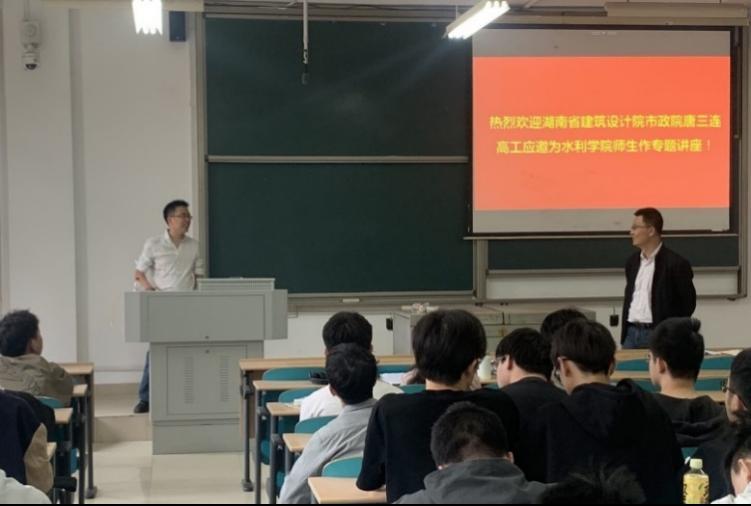 5月12日上午,湖南省建筑设计院集团股份有限公司唐三连高工为我院师生学生作了题为“供水工程项目设计实践与思考”的专题讲座。专题讲座由给排水科学与工程系主任吴方同副教授主持,100余名师生参加了讲座。